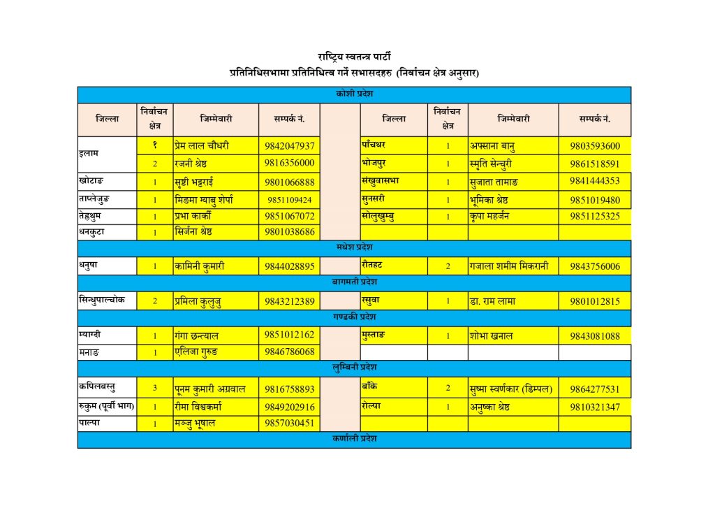हारेका क्षेत्रको जिम्मा रास्वपाका समानुपातिक सांसदलाई, कसलाई कुन क्षेत्र ?